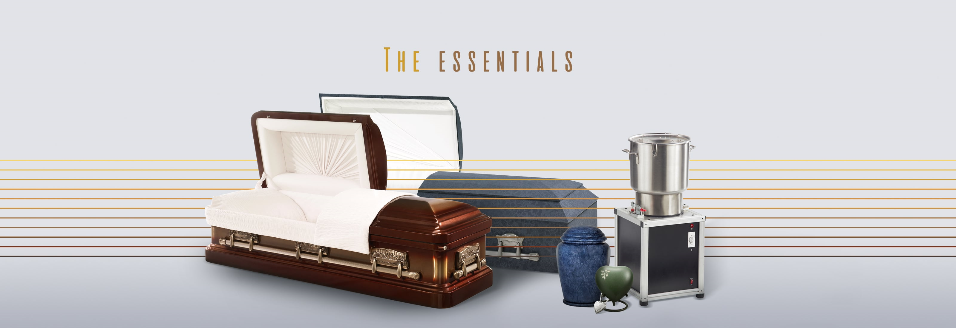 The Essentials collection now features all products distributed by Victoriaville & Co. including metal and fabric-covered caskets, vaults, urns and commemorative products, such as jewellery and keepsakes.